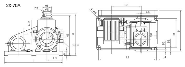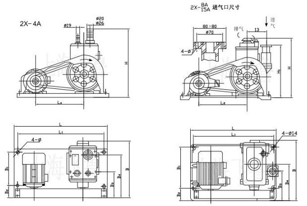 3、2X型旋片式真空泵可以用來直接獲得真空度在10~3托以下的真空作業(yè),以及配合其它真空作業(yè)之用。