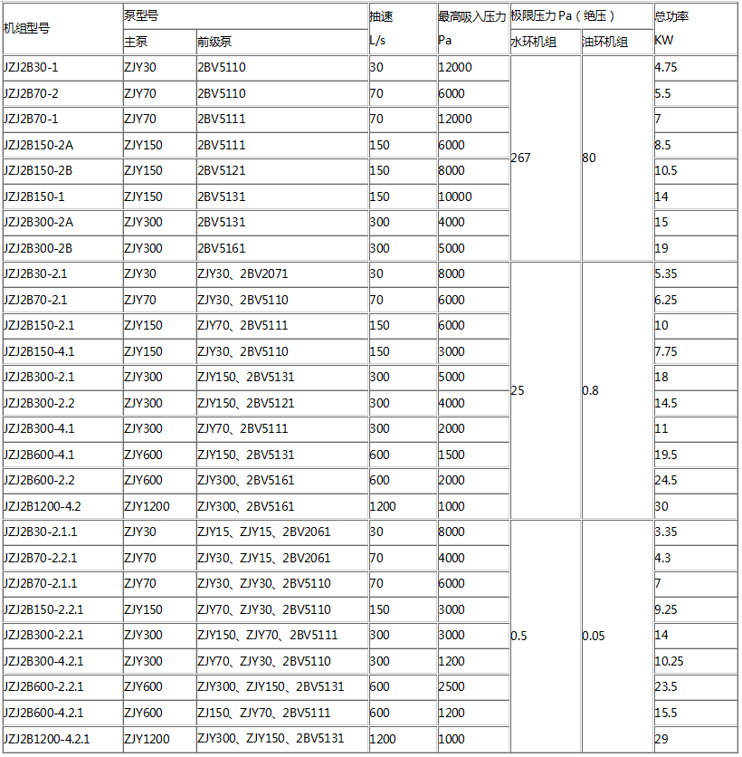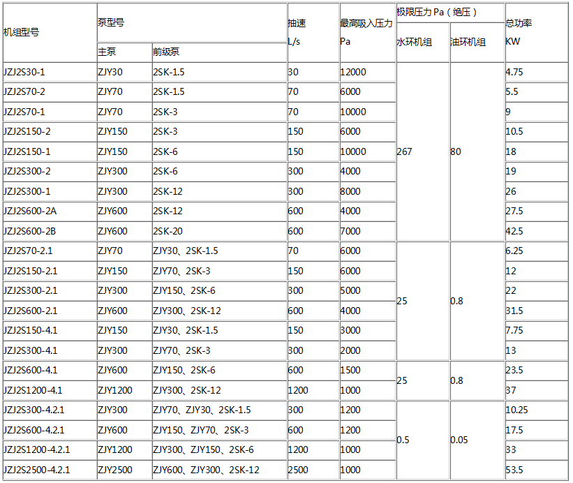 注:1.以上表格為行業(yè)推薦標(biāo)準(zhǔn)系列,因在實(shí)際生產(chǎn)應(yīng)用中工作條件的不同,吸入氣體壓力會(huì)發(fā)生很多變化,所以在選型時(shí)應(yīng)根據(jù)實(shí)際抽氣過程、氣體釋放過程、可疑氣體冷凝情況、吸入壓力的變化時(shí)間等進(jìn)行校核計(jì)算或參照現(xiàn)有設(shè)備使用情況選型。